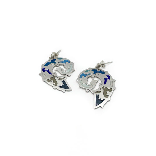 أقراط متدلية مصنوعة يدويًا من الفضة والمينا الأزرق