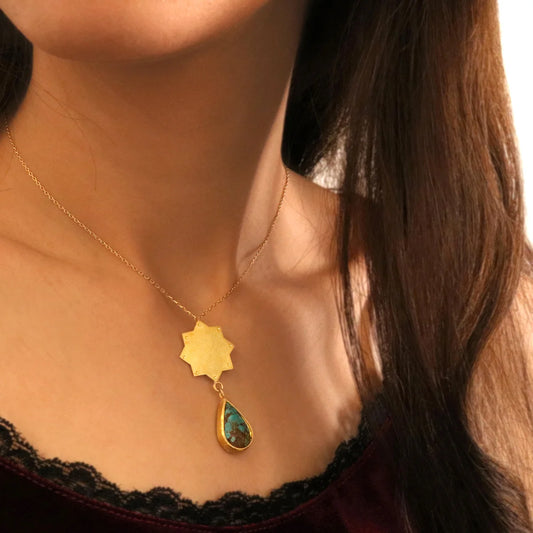 Gold Plated Silver Star Pendant Necklace with Turquoise