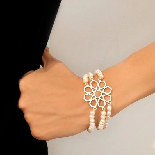 Geometric Star Handmade Silver Pearl Bracelet