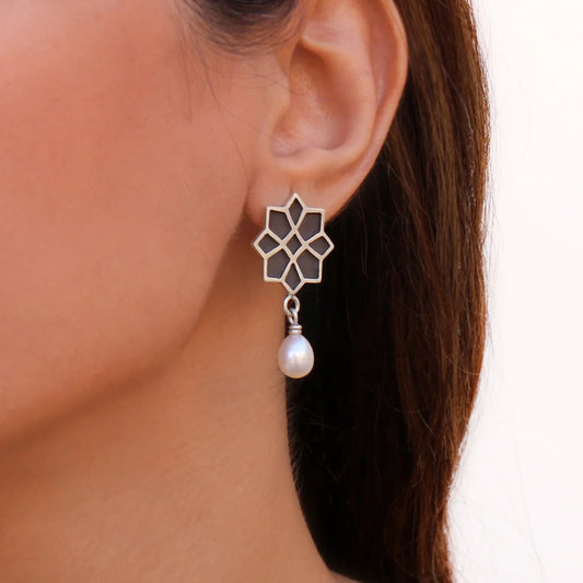 Geometric Star Handmade Silver Earrings with Pearls