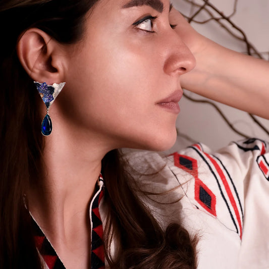 Handmade Silver Statement Earrings with Lapis Lazuli
