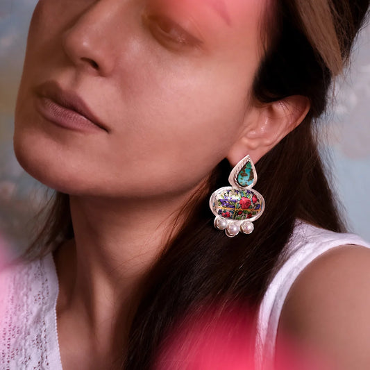 Handmade Silver Stud Earrings Turquoise and Pearls