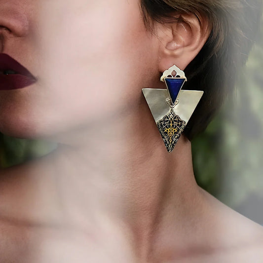 Handmade Silver Statement Earrings with Lapis Lazuli
