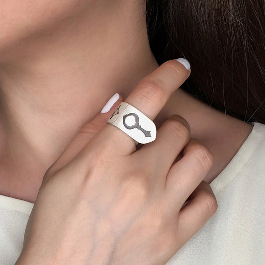Handmade debossed Oxidized Silver Statement Ring
