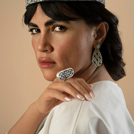 Handmade Silver Statement Earrings with Handwoven Persian Rug